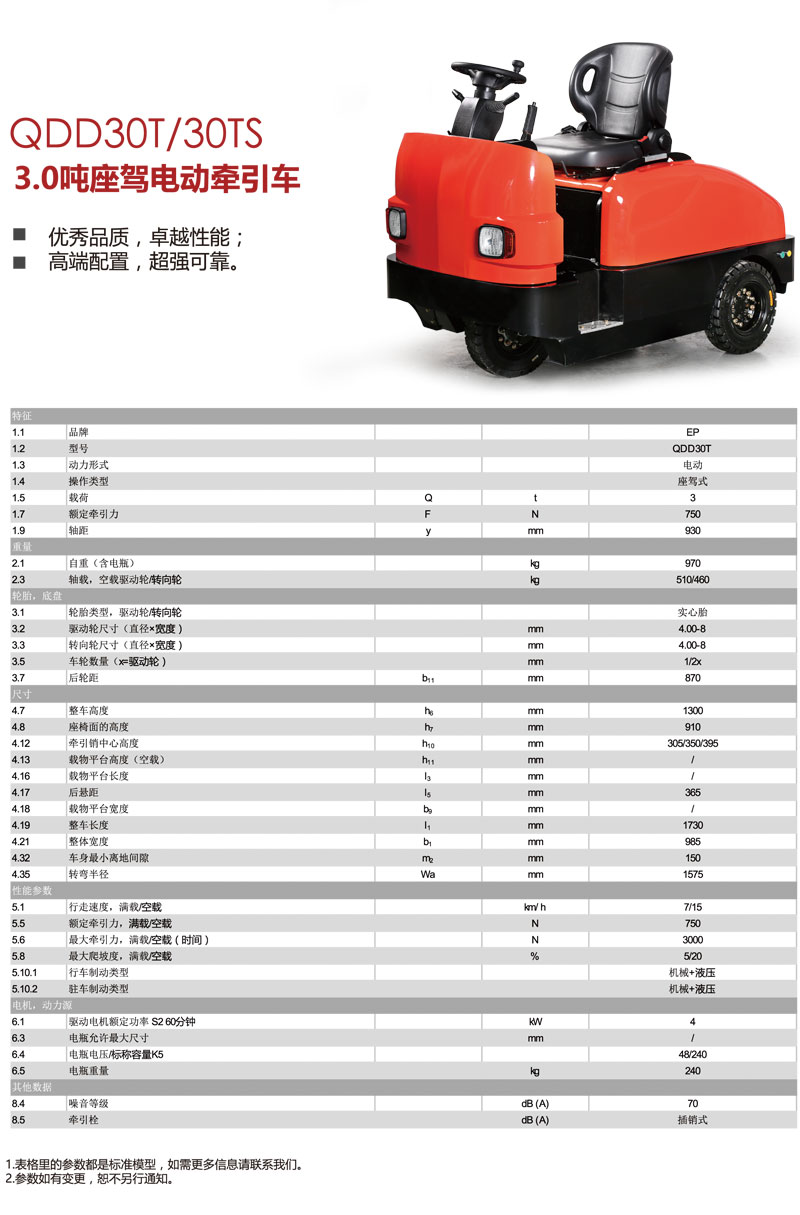 常平中力電動(dòng)叉車,3.0噸座駕電動(dòng)牽引車QDD30T/QDD30TS